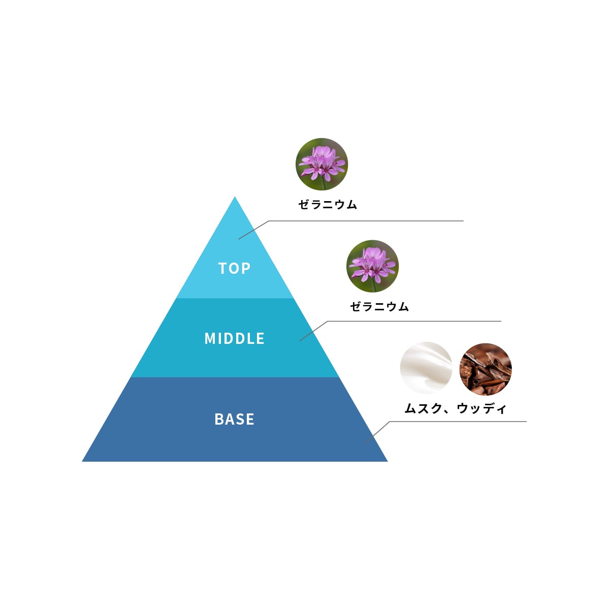 庭先を彩るゼラニウムを、ひときわ洗練された表情で表現したハーブ・フローラルの香り。