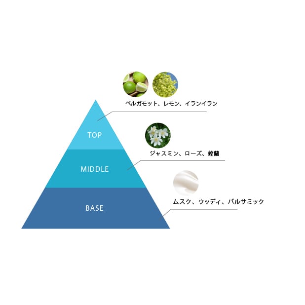 華やかさのあるフローラルに、フレッシュなシトラスとあたたかみと柔らかさの ある残香を合わせた、フロリエンタルの香り。